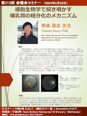 第214回の演者はNCIでポスドクをされている大原悠紀先生です。このたび5年のNIH留学を終えて帰国されるに当たり、これまでの研究成果とラボでの様々な経験をお話しいただきます。